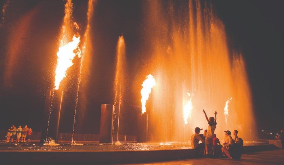Branson Landing transforms its waterfront promenade into a holiday destination. The 63-foot animated LED Christmas tree in Town Square runs light shows every 20 minutes after dark, and the iconic fountain and fire spectacular continues hourly. Pop into Bass Pro Shops for Santa's Wonderland—free crafts, games, and photos with Santa—then wander through over 100 shops and restaurants.